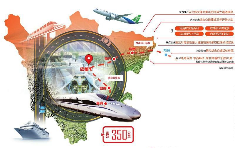 對內(nèi),有助于支撐我省“一干多支”“五區(qū)協(xié)同”發(fā)展戰(zhàn)略。西南交大黨委副書記晏啟鵬認為,四川空、公、水運已有一定基礎,發(fā)展態(tài)勢清晰,再新增受惠面大、參與度廣的兩條高速鐵路建設,能使成都和川南經(jīng)濟區(qū)、川東北經(jīng)濟區(qū)實現(xiàn)1小時左右交通互聯(lián),不同城市將連點成面。