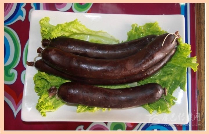 血腸:是將宰殺牲畜的血與玉米面或麥面、蕎面混合在一起,再加以食鹽、花椒面等香料提味,然后將混合物裝進洗干凈的牲畜腸里,人鍋煮熟即可。吃的時候,或蒸或烤:蒸則腸衣柔軟很有嚼頭;烤則腸衣香脆可口。因為血腸不能長時間保存,所以吃血腸的時間一般在宰殺牲畜的幾天內(nèi)。
