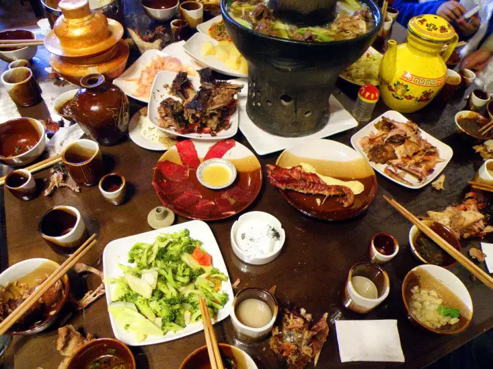 藏餐是中國(guó)藏族少數(shù)民族日常食用的菜肴,最具有特色和代表性的藏餐:灌腸、青稞酒、酥油茶、酸奶、牛羊手抓肉、涼拌牦牛舌、糌粑,以及甜茶、烤腸、風(fēng)干肉、夏普青等。擺上這一大桌,簡(jiǎn)直是吃貨的天堂。