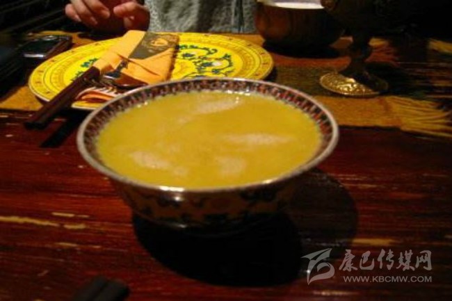 藏族酥油茶是一種以茶為主料,藏語為“恰蘇瑪”,意思是攪動(dòng)的茶。并加有多種食物經(jīng)混合而成的液體飲料,所以,滋味多樣,喝起來咸里透香,甘中有甜,它既可暖身御寒,又能補(bǔ)充營養(yǎng)。