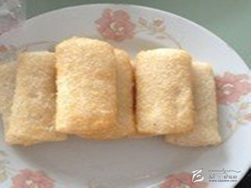炸白年糕 原料 糯米1000克,茶油100克。 做法 將糯米洗凈浸透后瀝去水上蒸籠蒸至熟爛,取出用木棒搗爛,壓展成塊,用刀切成約50克的小塊,然后將年糕放入燒沸的油鍋中,待炸成年糕翻白浮起時(shí),即可撈出。