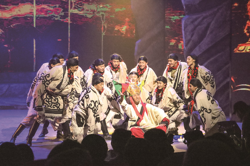 這是一場充滿康巴文化底蘊的視聽盛宴,高品質(zhì)的演出陣容,極具地方特色的舞臺效果,引人入勝的劇情細節(jié)……演出在一首阿卡貝拉版《康定情歌》中拉開序幕,7名演員以多聲部合聲演繹這首蜚聲中外的世紀情歌,舞臺紗幕上顯現(xiàn)的星光點點,仿佛將璀璨星空搬到了舞臺上。