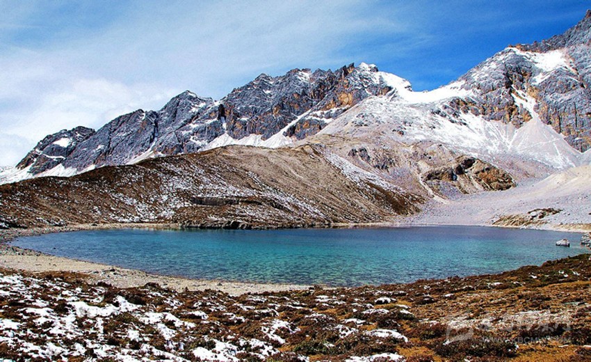五色海又名登崇措,舍利海一意為吉祥海,五色海由于光的折射下,產生五種不同顏色而得名:其真名為“單增措”,它位于仙乃日與央邁勇之間,海拔4700米,湖面呈圓形。冰谷下伸至湖畔,雪山倒影湖面,呈現奇幻的色彩。是藏區(qū)著名的圣湖(佛經中贊譽該湖與西藏羊卓雍措齊名),據傳能“返演歷史,預測未來”,還有很多宗教上的傳說。